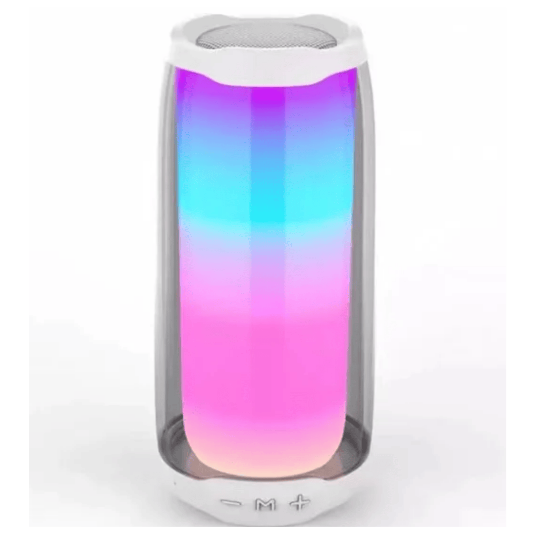 Parlante portátil con iluminación RGB de pantalla completa que se sincroniza con la música para una experiencia envolvente. Conexión Bluetooth 5.0, bajos reforzados con driver de 45mm y múltiples modos de reproducción (USB y tarjeta TF). Batería recargable de 3 a 4 horas, ideal para uso en casa o al aire libre.
